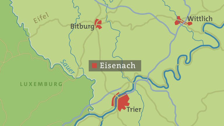 Eisenach liegt in der Südeifel, etwa zwanzig Kilometer nordwestlich von Trier. Rund 380 Menschen sind in der Gemeinde zu Hause. Im Gegensatz zur Wartburgstadt Eisenach in Thüringen ist das Eisenach in der Eifel wenig bekannt, aber, legt man die erste urkundliche Erwähnung zu Grunde, rund 400 Jahre älter als der berühmte städtische Namensvetter.